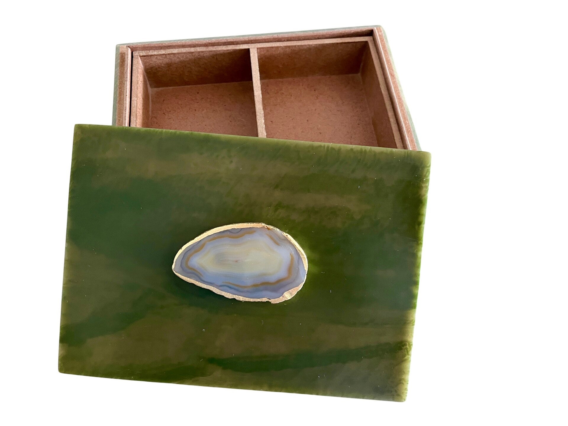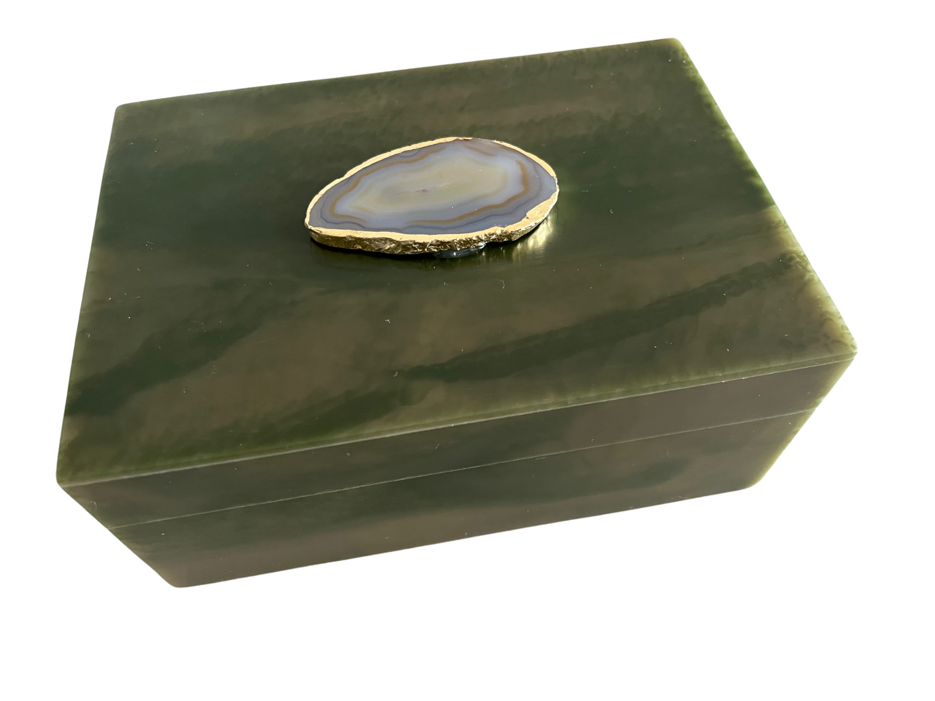 Berg je kostbare spulletjes op in stijl. Laat je betoveren door de rijke kleuren en fascinerende patronen van de Agaat die deze doos siert. Elk stuk Agaat is met zorg geselecteerd en met de hand gepolijst om hem een mooie glans te geven, waardoor jouw box echt uniek is.