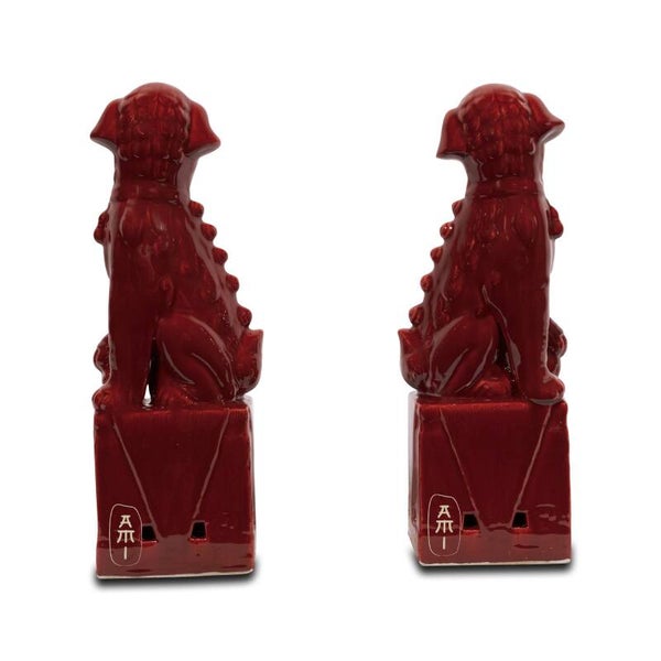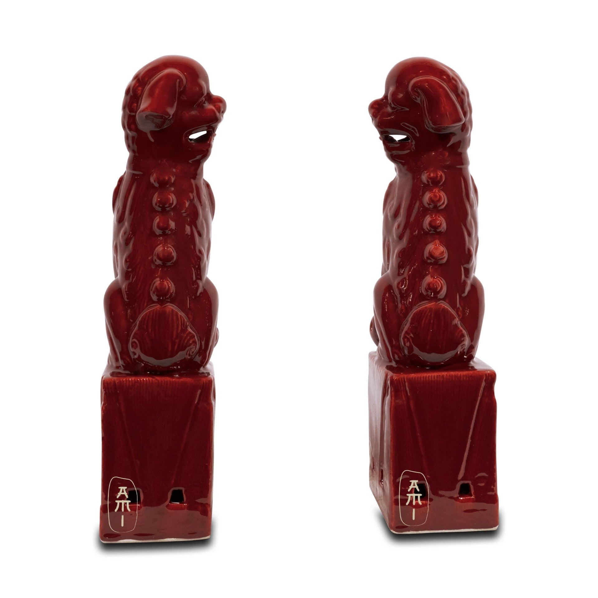 Diep Rode Chinese Temple lions ( Fu-dogs ) worden altijd als paar neergezet. De leeuw, staat altijd aan de rechterkant van de tempel deur, heeft een bal onder zijn poot en staat voor voorspoed en macht. De leeuwin aan de linkerkant heeft een jong onder haar poot en staat voor liefhebben.