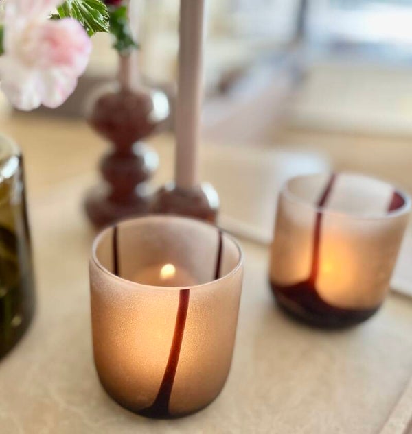 Windlicht Multi lines purple mat - 9 x 10 cm - Dekocandle